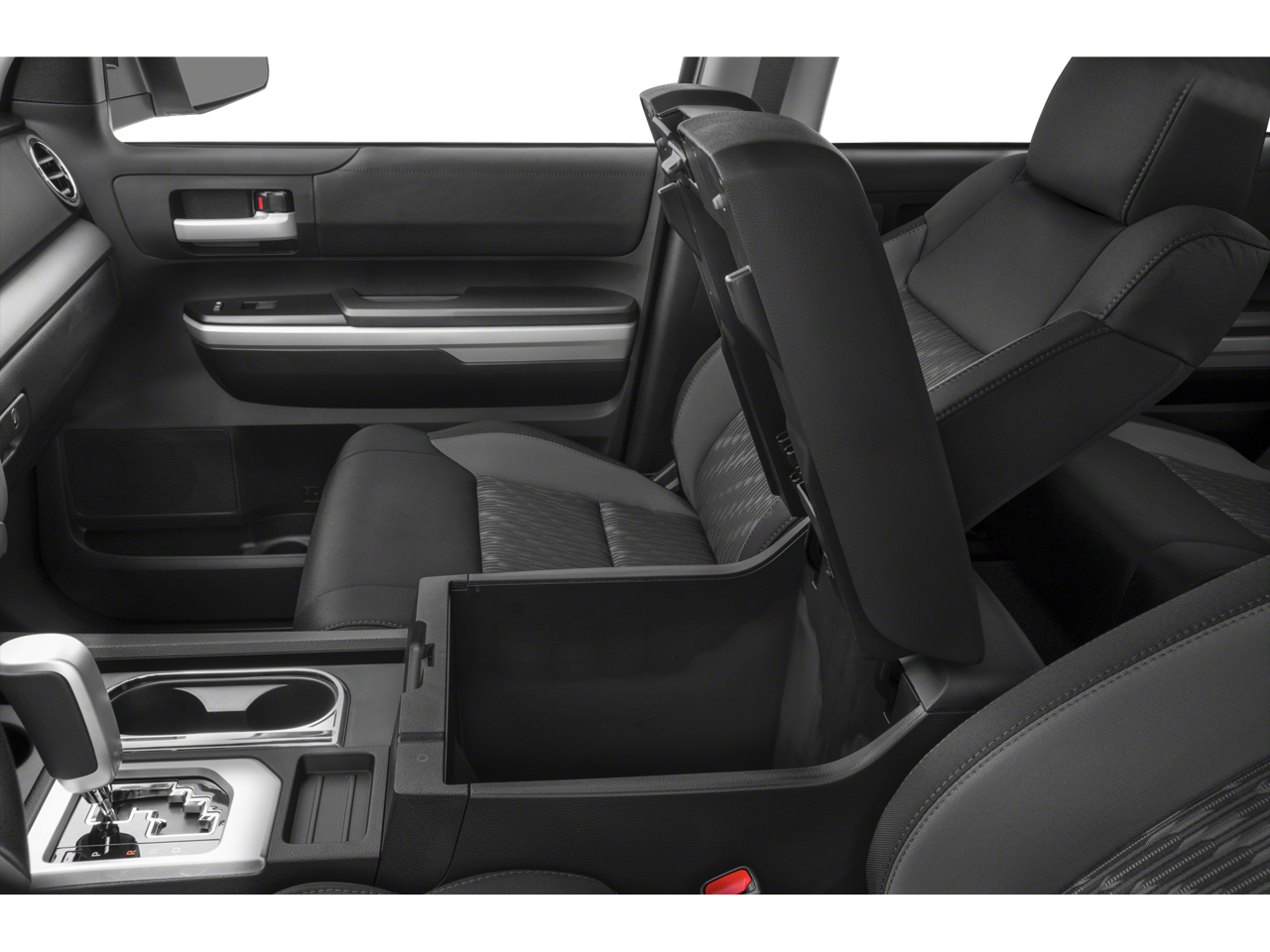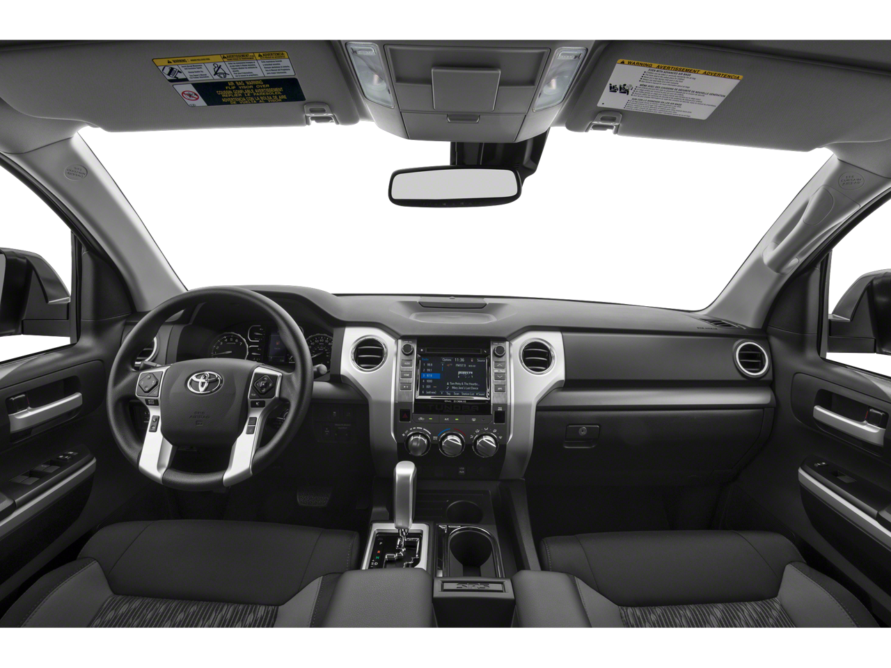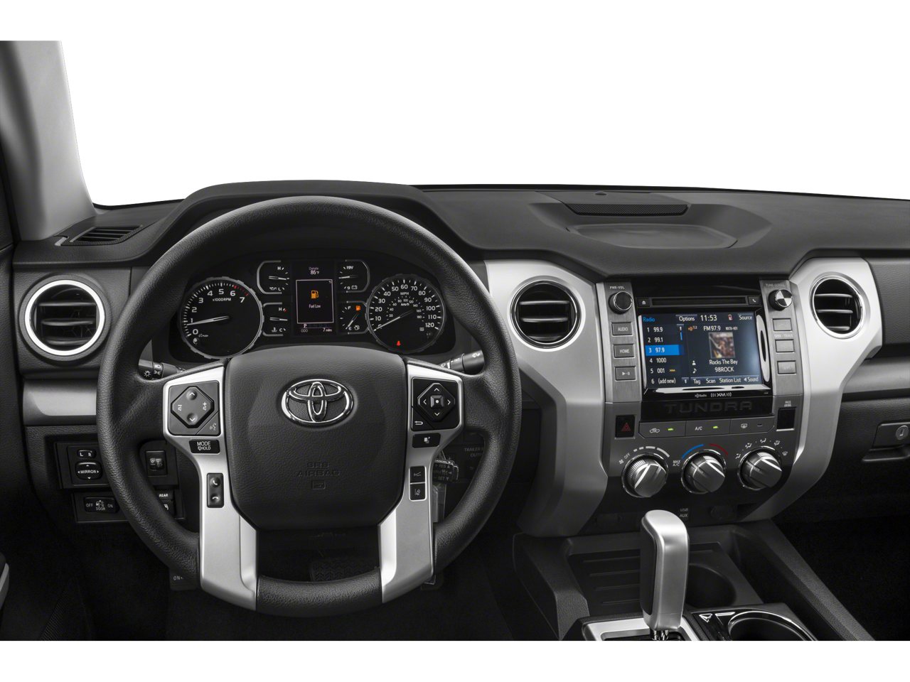 18 x 8J Styled Steel Wheels, 3-Passenger Front Bench Seat, 38 Gallon Fuel Tank Capacity, 4-Wheel Disc Brakes, 4.30 Axle Ratio, 6 Speakers, ABS brakes, Air Conditioning, AM/FM radio: SiriusXM, Anti-Theft Immobilizer w/Alarm, Auto High-beam Headlights, Auto-Dimming Rear-View Mirror, Auto-dimming Rear-View mirror, Brake assist, CD player, Compass, Deck Rail System, Delay-off headlights, Driver door bin, Driver vanity mirror, Dual front impact airbags, Dual front side impact airbags, Electronic Stability Control, Exterior Parking Camera Rear, Fabric Seat Trim, Front anti-roll bar, Front Bucket Seats, Front Center Armrest w/Storage, Front fog lights, Front reading lights, Front wheel independent suspension, Fully automatic headlights, Garage door transmitter: HomeLink, Heated door mirrors, HomeLink Universal Transceiver, Illuminated entry, Knee airbag, Leather Shift Knob, Low tire pressure warning, Occupant sensing airbag, Outside temperature display, Overhead airbag, Overhead console, Panic alarm, Passenger door bin, Passenger vanity mirror, Power door mirrors, Power steering, Power windows, Radio: Entune Audio Plus AM/FM/HD Radio w/CD, Radio: Entune Premium Audio AM/FM w/HD Radio & CD, Rear reading lights, Rear seat center armrest, Rear step bumper, Rear window defroster, Remote keyless entry, Speed control, Speed-sensing steering, Split folding rear seat, Tachometer, Tilt steering wheel, Traction control, TRD Shift Knob, Trip computer, Variably intermittent wipers, and Voltmeter.